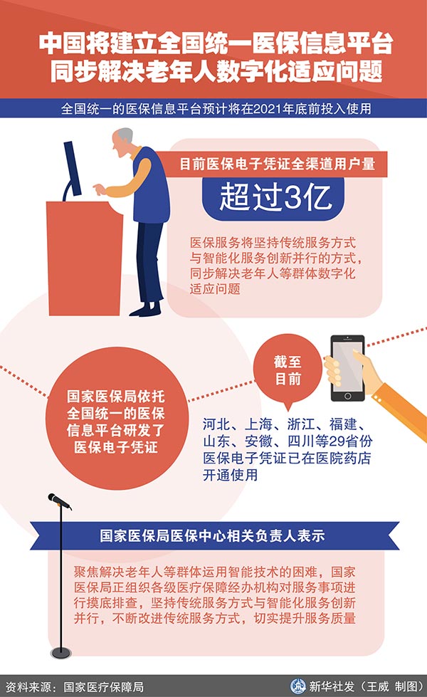 新華社北京11月26日電(記者屈婷)記者從國家醫(yī)療保障局了解到,全國統(tǒng)一的醫(yī)保信息平臺預計將在2021年底前投入使用,目前醫(yī)保電子憑證全渠道用戶量超過3億。同時,醫(yī)保服務將堅持傳統(tǒng)服務方式與智能化服務創(chuàng)新并行的方式,同步解決老年人等群體數(shù)字化適應問題。