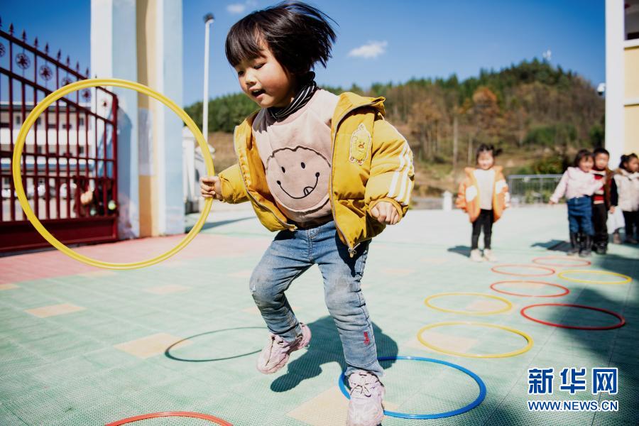 云南省鎮(zhèn)雄縣以古鎮(zhèn)巖洞腳村幼兒園的孩子在操場上玩耍(11月11日攝)。新華社記者 王冠森 攝