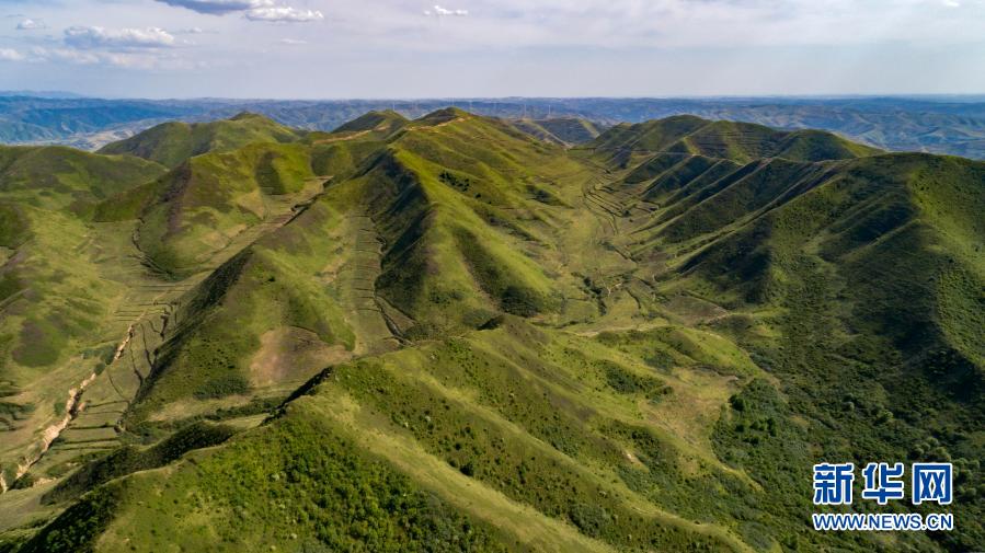 這是6月3日拍攝的被綠色覆蓋的寧夏固原市原州區(qū)馬東山林場(無人機照片)。新華社記者 王鵬 攝