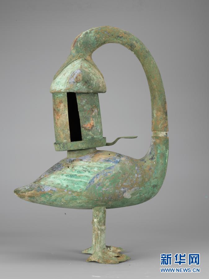“漢代燈具多以動(dòng)物油脂為燃料,點(diǎn)燈時(shí),煙塵被燈罩擋住,向上進(jìn)入魚、雁體內(nèi),可防止煙塵污染室內(nèi)空氣?!眹?guó)家博物館考古研究所原所長(zhǎng)信立祥說。