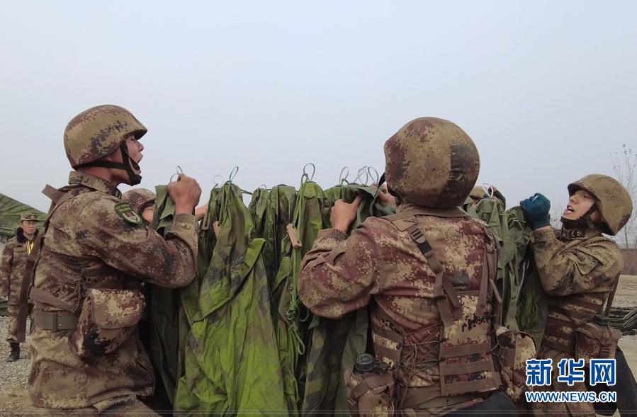 宿營保障隊參賽隊員在搭設(shè)野戰(zhàn)宿營帳篷(11月30日視頻截圖)。新華社發(fā)(呂冀周 攝)