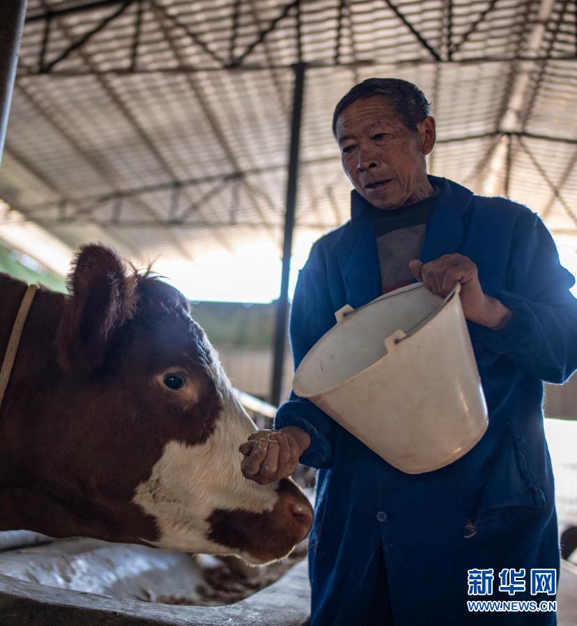 云南省楚雄市子午鎮(zhèn)挖銅村村民羅家旺在村里的養(yǎng)牛合作社喂牛(11月30日攝)。新華社記者 江文耀 攝