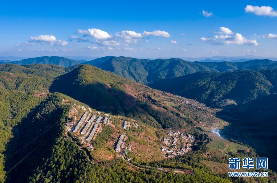 群山中的云南省楚雄市子午鎮(zhèn)挖銅村埂么村民小組(11月30日攝,無人機(jī)照片)。新華社記者 江文耀 攝