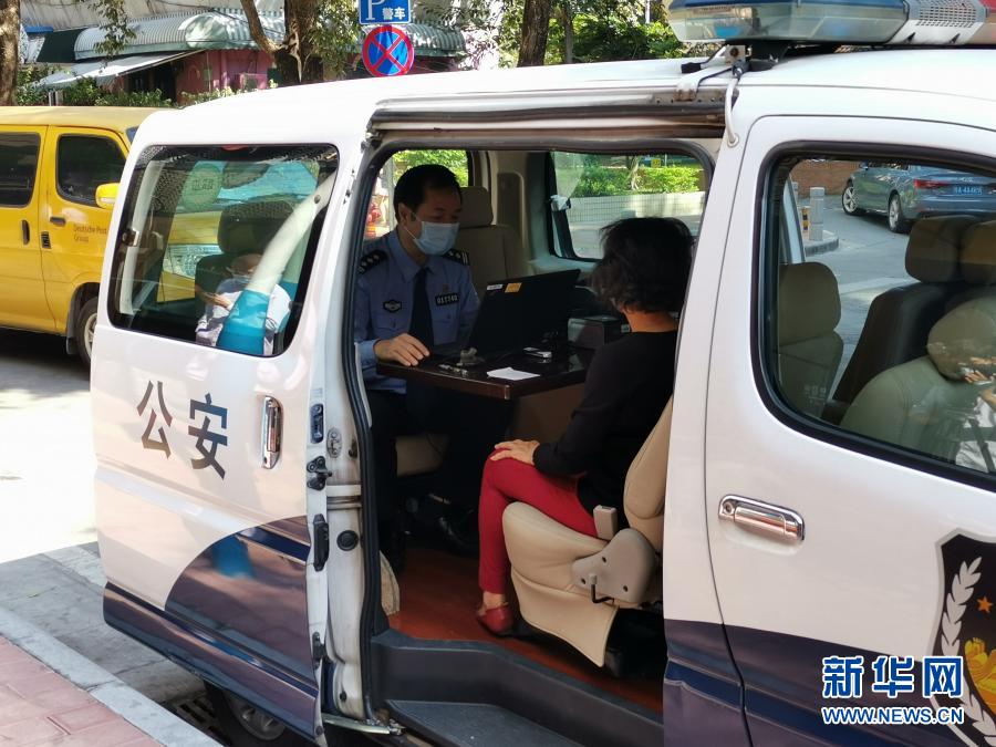 廣州公安的愛心服務(wù)車為行動(dòng)不便的市民提供上門服務(wù)(10月27日攝)。新華社發(fā)(廣州市公安局供圖)