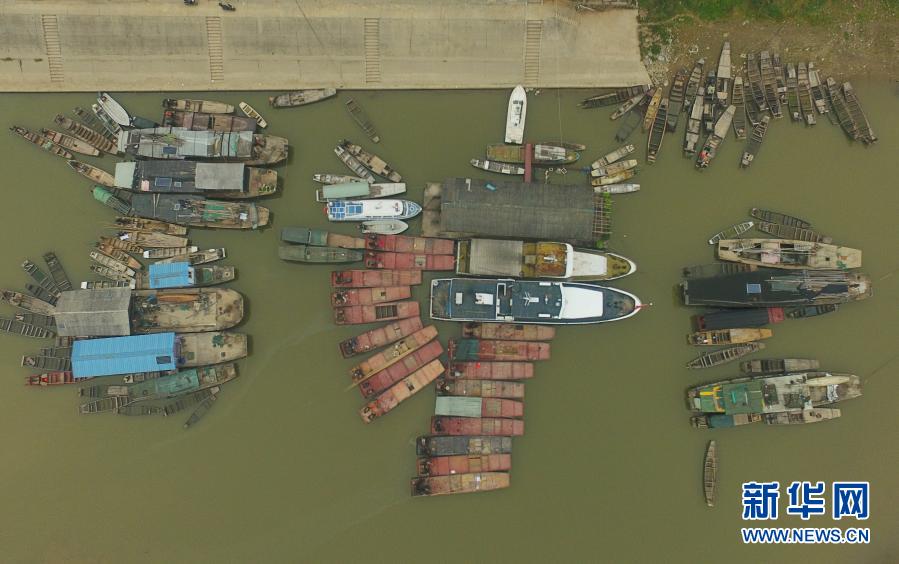 在湖南常德漢壽縣蔣家嘴鎮(zhèn),待回收的鐵漁船??吭诙赐ズ叄?019年12月17日攝,無人機(jī)照片)。2020年1月1日零時(shí)起,長(zhǎng)江流域332個(gè)自然保護(hù)區(qū)和水產(chǎn)種質(zhì)資源保護(hù)區(qū)全面禁止生產(chǎn)性捕撈。新華社記者 薛宇舸 攝