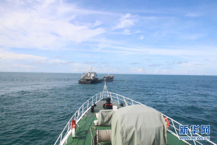 海警執(zhí)法員登船檢查(5月8日攝)。新華社發(fā)(江壯志 攝)