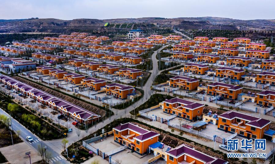 陜西省榆林市榆陽(yáng)區(qū)黃家屹嶗村新貌(4月7日攝,無(wú)人機(jī)照片)。新華社記者 陶明 攝