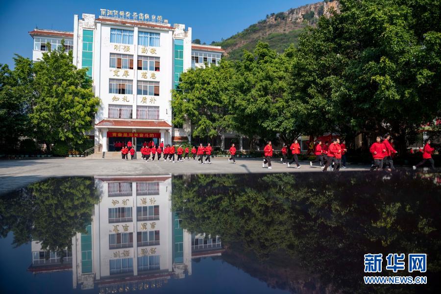 華坪女高學(xué)生從教學(xué)樓跑向食堂吃飯(11月30日攝)。新華社發(fā)(陳欣波 攝)