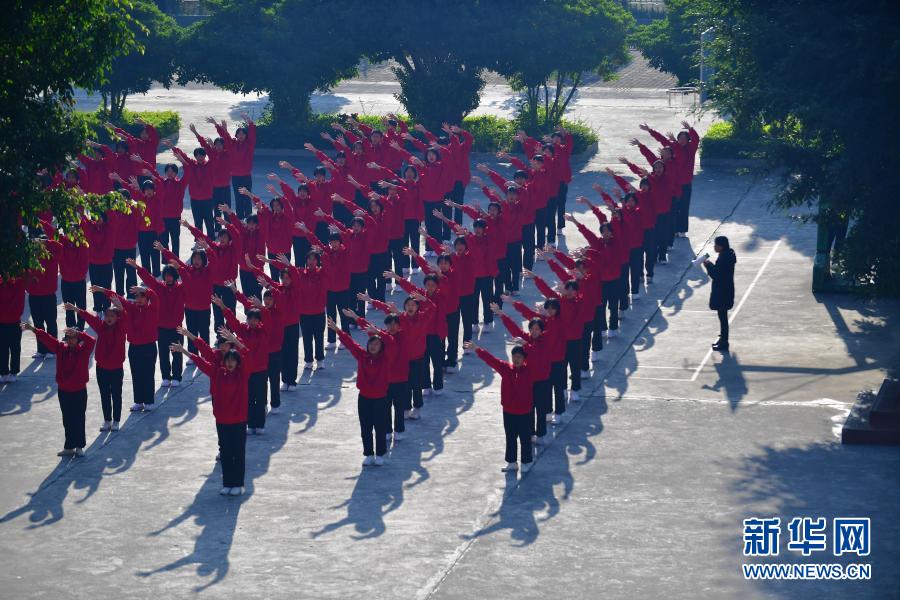張桂梅在督促學(xué)生做課間操(12月2日攝)。新華社發(fā)(陳欣波 攝)
