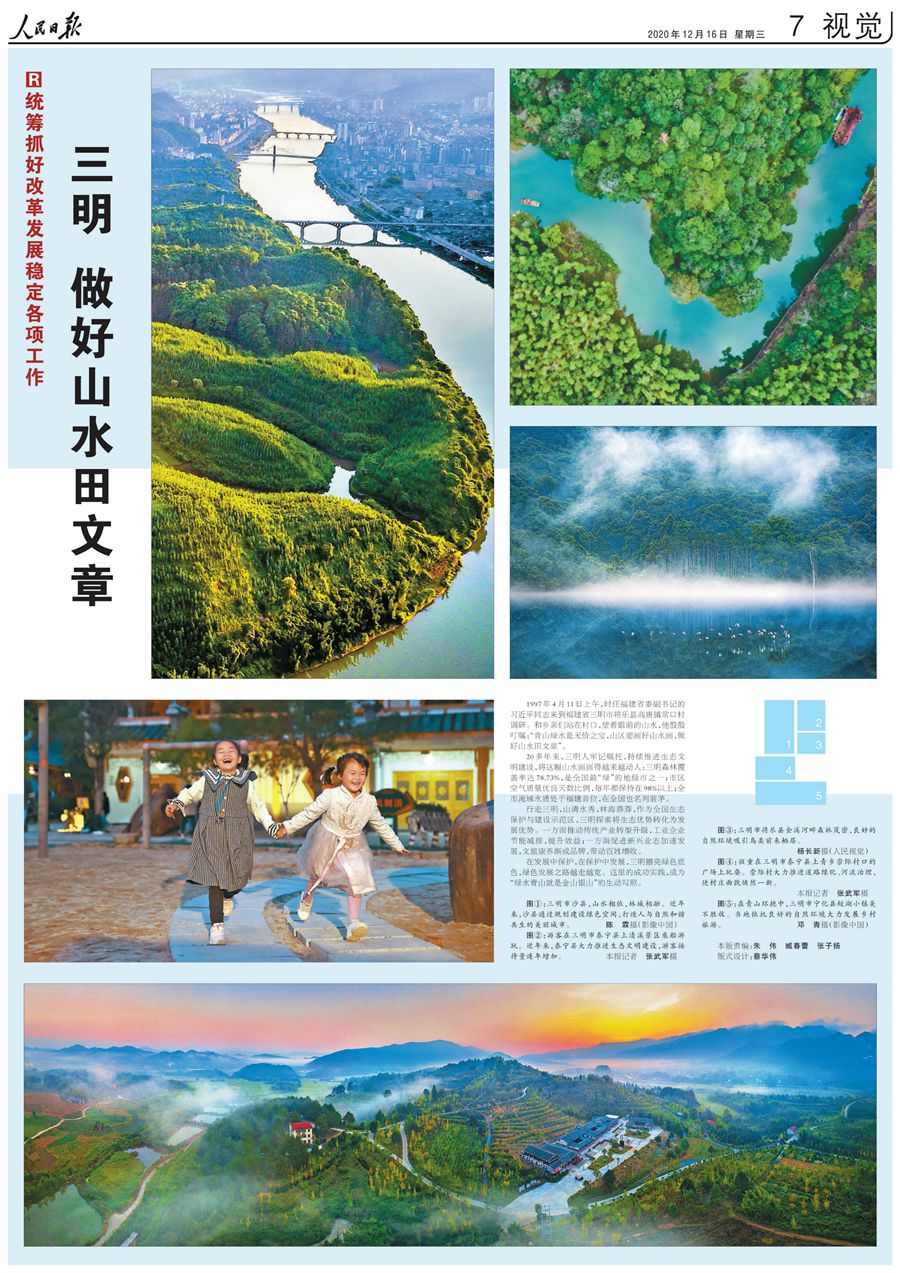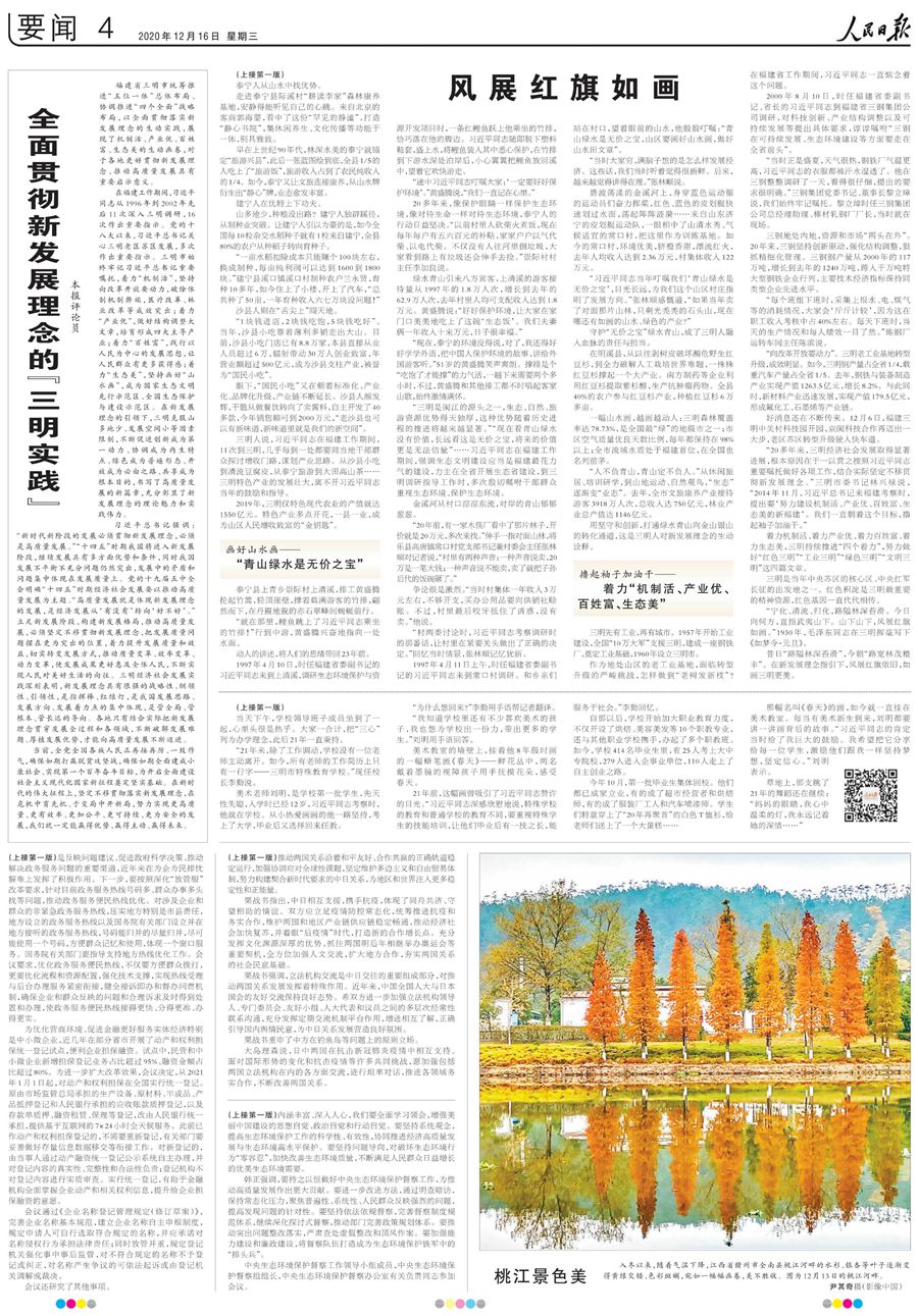 福建省三明市統(tǒng)籌推進(jìn)“五位一體”總體布局、協(xié)調(diào)推進(jìn)“四個全面”戰(zhàn)略布局,以全面貫徹落實(shí)新發(fā)展理念的生動實(shí)踐,展現(xiàn)了機(jī)制活、產(chǎn)業(yè)優(yōu)、百姓富、生態(tài)美的生動畫卷,對于各地更好貫徹新發(fā)展理念、推動高質(zhì)量發(fā)展具有重要啟示意義。今天人民日報(bào)推出多篇報(bào)道,刊發(fā)評論員文章,聚焦三明的探索和實(shí)踐。