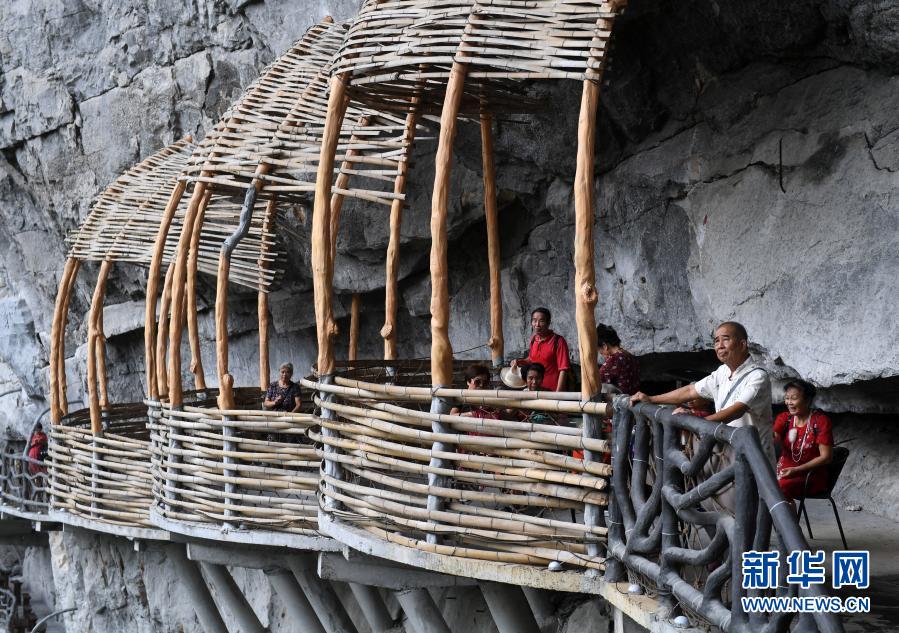 游客在廣西羅城仫佬族自治縣棉花天坑景區(qū)旅游觀(guān)光(9月15日攝)。新華社記者 陸波岸 攝