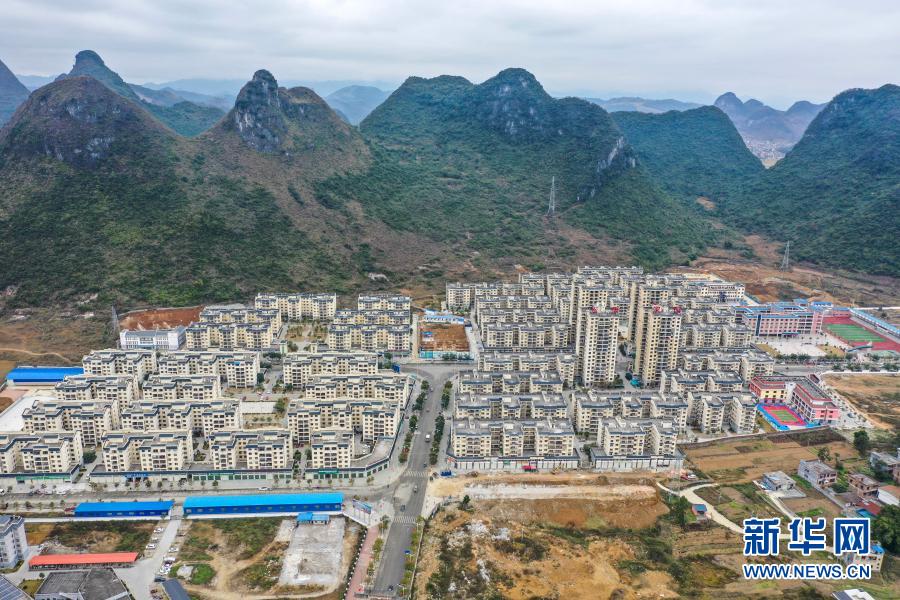 廣西羅城仫佬族自治縣易地扶貧搬遷安置點(diǎn)“仫佬家園”(12月16日攝,無(wú)人機(jī)照片)。新華社記者 曹祎銘 攝