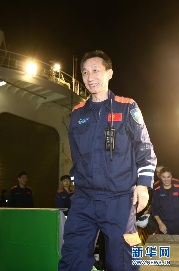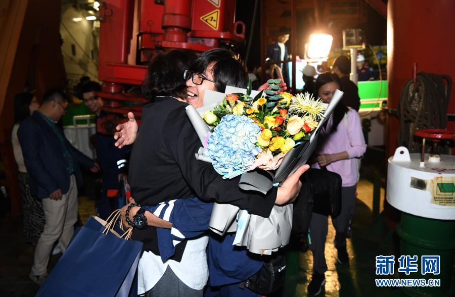 12月21日,“奮斗者”號(hào)海試保障母船“探索二號(hào)”靠泊三亞,科考隊(duì)員和前來迎接的家屬一起離船。新華社記者 趙穎全 攝