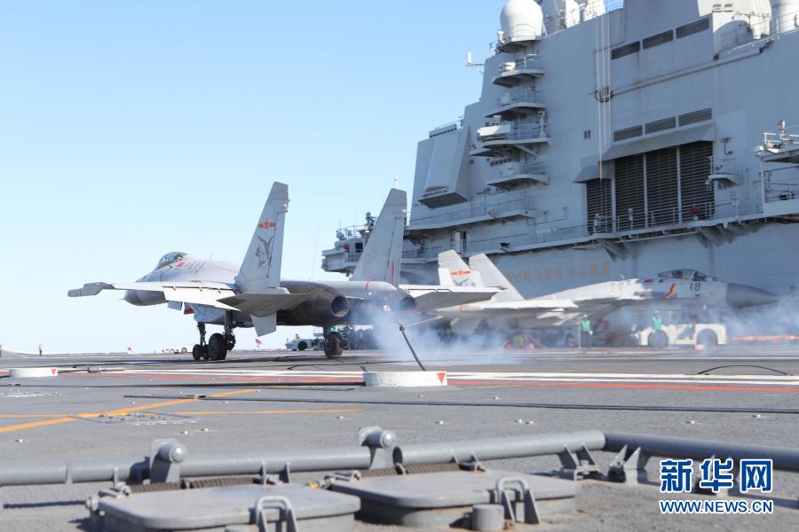 飛行學(xué)員駕駛殲-15艦載戰(zhàn)斗機在遼寧艦成功實施阻攔著艦(資料照片)。新華社發(fā)(楊皓 攝)
