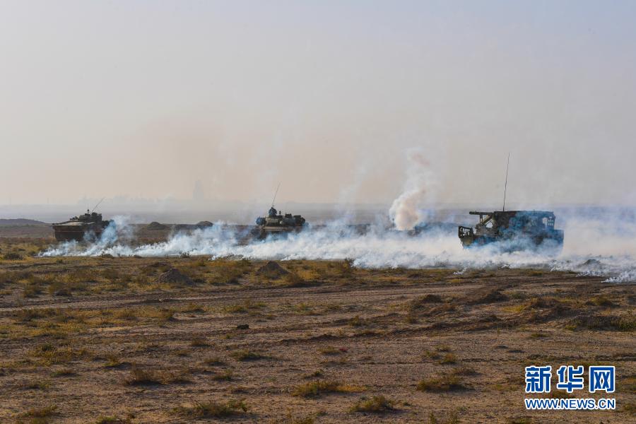 東部戰(zhàn)區(qū)陸軍第73集團軍某旅紅四連官兵在大漠戈壁參加紅藍(lán)對抗演練(10月9日攝)。新華社發(fā)(劉志勇 攝)