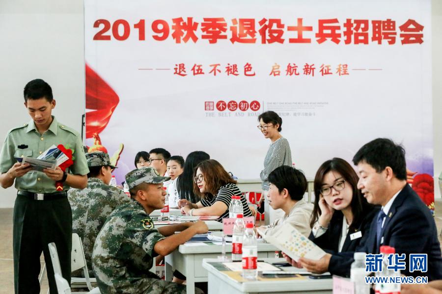 陸軍第72集團軍某旅與地方政府合作舉行秋季退役士兵招聘會(2019年8月30日攝)。新華社發(fā)(莊林毅 攝)