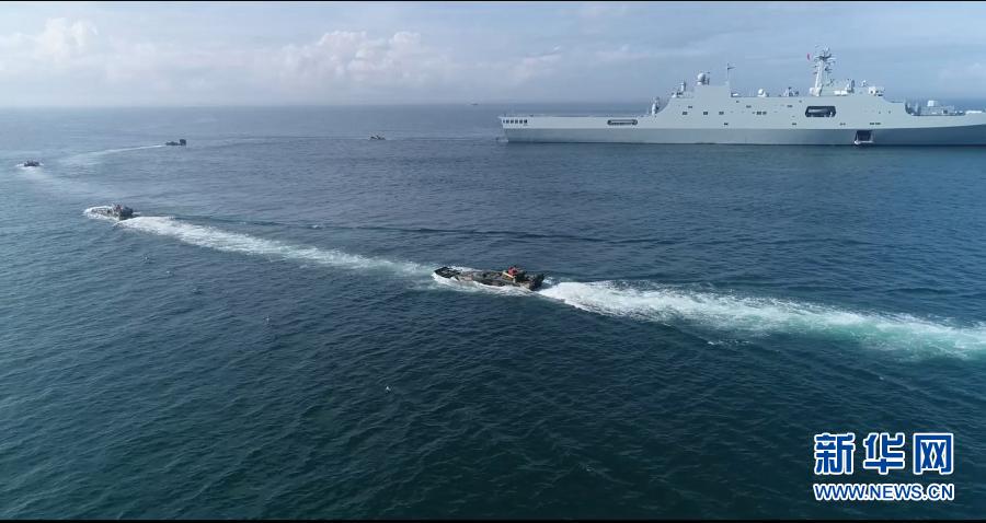 陸軍第72集團軍某旅組織海上駕駛訓練,戰(zhàn)車按協(xié)同隊形依次駛上海軍登陸艦(2018年8月16日攝,無人機照片)。新華社發(fā)(莊林毅 攝)