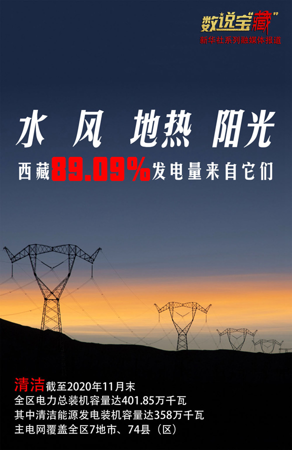 西藏自治區(qū)發(fā)展改革委的數(shù)據(jù)顯示,近年來西藏發(fā)電能力大幅增長,截至2020年11月末,全區(qū)電力總裝機容量達401.85萬千瓦,其中清潔能源板塊增長迅速,同期水電、風(fēng)電、地?zé)嵋约疤柲芄夥l(fā)電裝機容量達358萬千瓦,清潔能源在發(fā)電裝機容量中的占比達89.09%。
