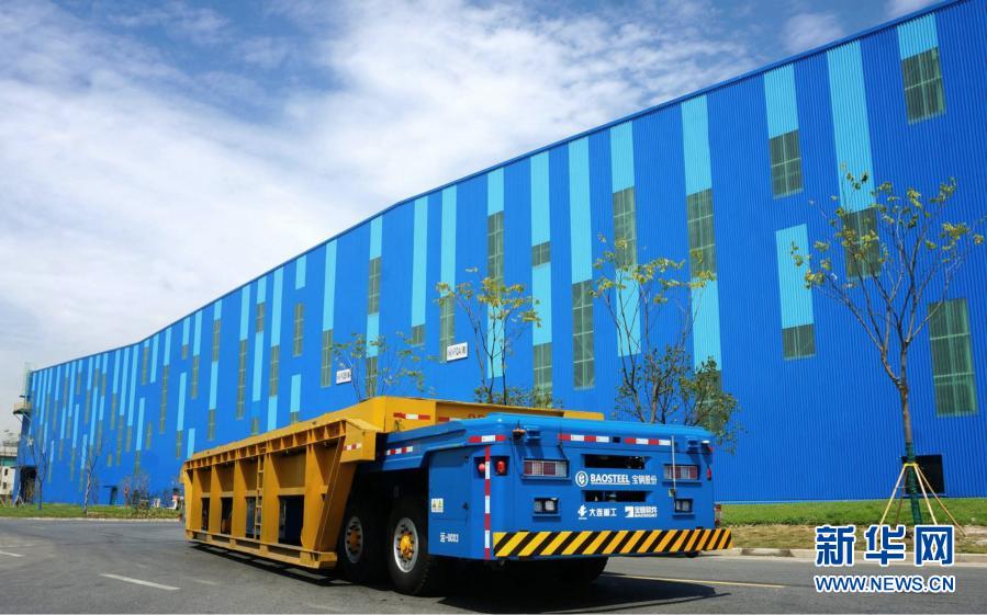 這是中國(guó)寶武寶鋼股份上海寶山基地的無(wú)人駕駛重載框架車及無(wú)人倉(cāng)庫(kù)(資料照片)。新華社發(fā)(寶武集團(tuán)供圖)