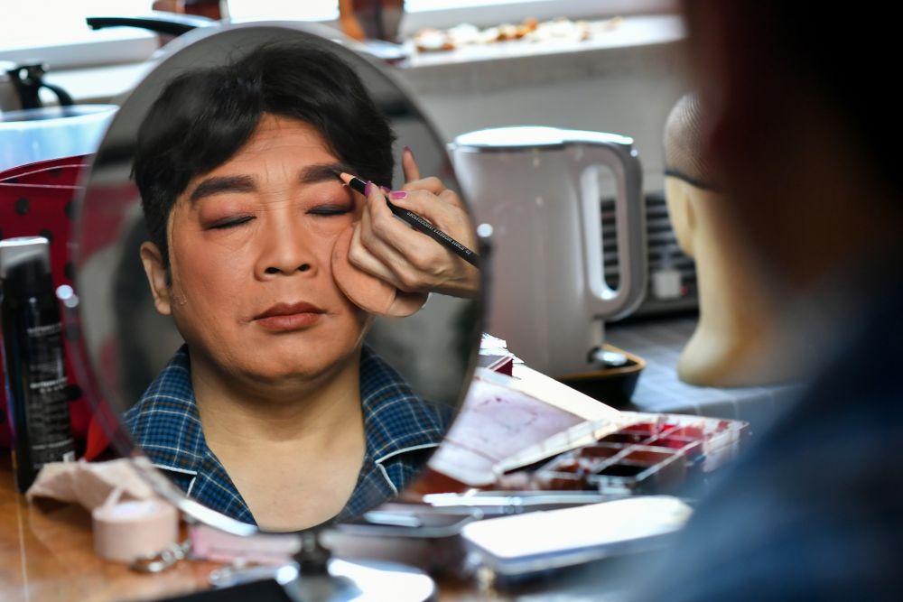 在各個舞臺間轉(zhuǎn)場的間隙,武凌云帶著戲劇妝容,向記者講述了一年來的生活。