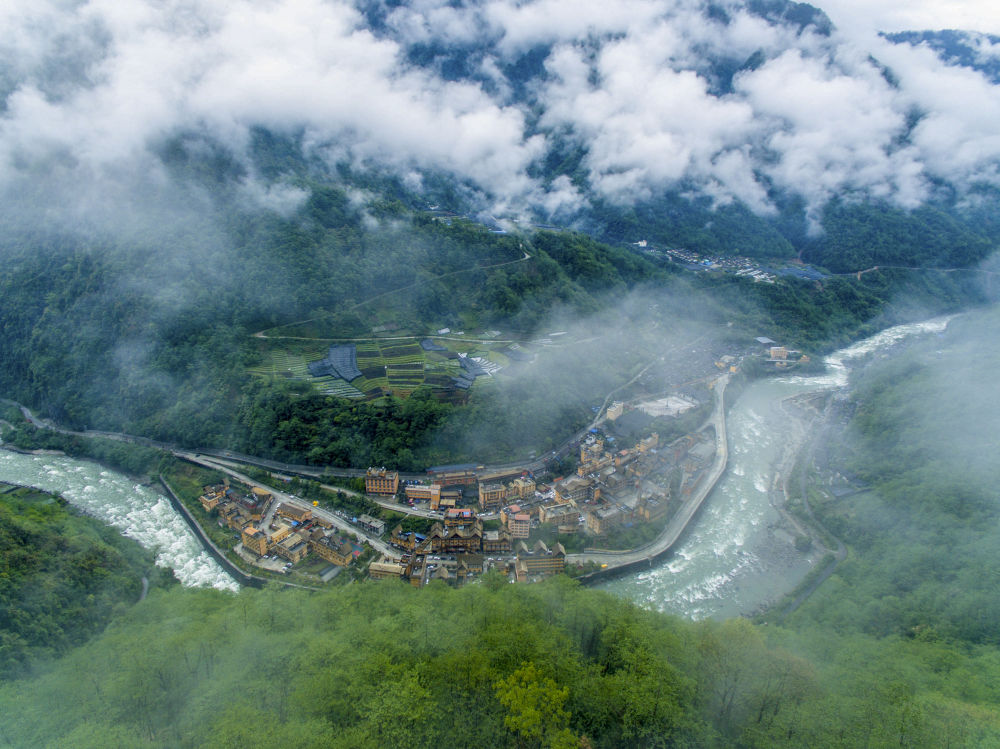 云霧繚繞的云南貢山獨龍族怒族自治縣獨龍江鄉(xiāng)(2019年4月16日無人機拍攝)。新華社記者 江文耀 攝