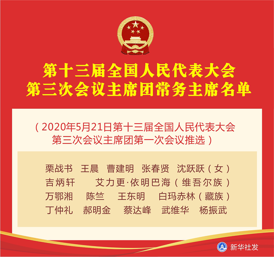 (2020年5月21日第十三屆全國人民代表大會(huì)第三次會(huì)議主席團(tuán)第一次會(huì)議推選)