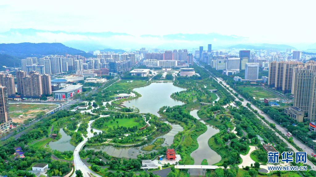 龍巖市主城區(qū)龍津湖公園一景(5月14日攝,無(wú)人機(jī)照片)。新華社發(fā)