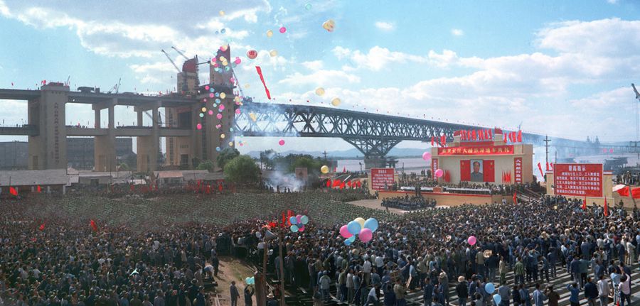 1968年12月29日,南京市5萬多軍民歡聚在江邊橋頭,隆重舉行大會,慶祝南京長江大橋全面建成。慶祝大會結(jié)束后,紅色的信號彈騰空而起,在一片鞭炮和鑼鼓聲中,100多輛滿載南京群眾代表的彩車徐徐通過公路橋。頓時,大江南北,橋上橋下,車內(nèi)車外,一片歡騰,歡呼聲震撼大地,響徹云霄。