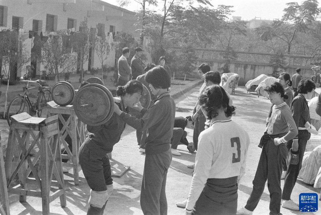 參加第十屆女排世錦賽的中國女排進(jìn)行賽前訓(xùn)練(1986年9月資料照片)。新華社記者王景英攝