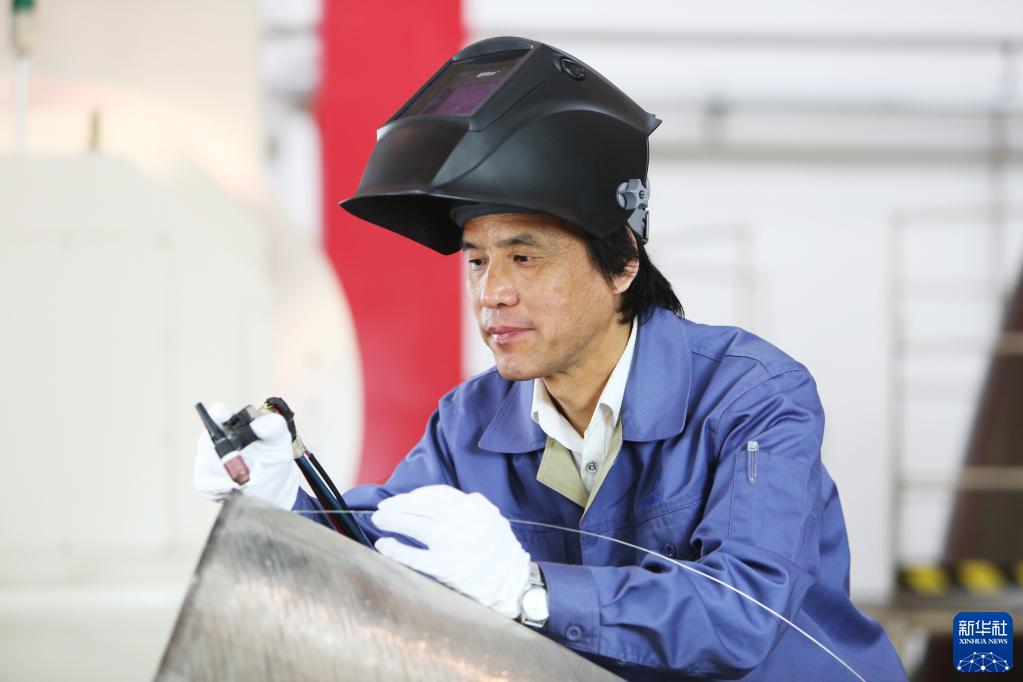 “金手天焊”高鳳林在工作中(2015年4月30日攝)。他先后為90多發(fā)火箭焊接過“心臟”,攻克航天焊接200多項難關(guān)。新華社發(fā)