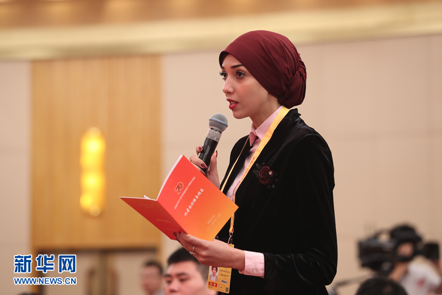 9月24日,慶祝中華人民共和國(guó)成立70周年活動(dòng)新聞中心在北京梅地亞中心二層新聞發(fā)布廳舉辦第一場(chǎng)專題集體采訪。圖為境外媒體記者提問(wèn)。新華網(wǎng)記者 郭小天 攝