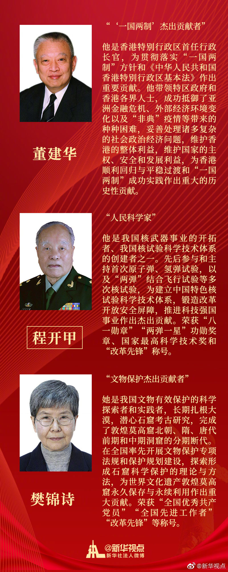 南仁東、董建華、于漪、王蒙、王有德等28人獲授國家榮譽稱號。他們與時代同行、砥礪奮進,為共和國的事業(yè)鞠躬盡瘁,不朽的“鋼鐵精神”將永遠激勵著我們。為這些閃亮的名字點贊!轉發(fā)傳遞,致敬功勛!
