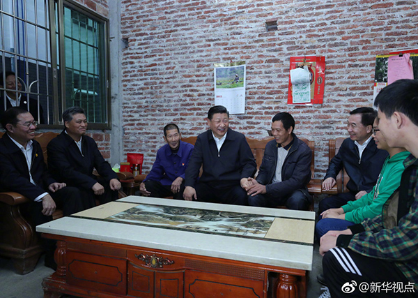 23日下午,習(xí)近平一行沿著崎嶇的山路乘車來到廣東省英德市連江口鎮(zhèn)連樟村,走進(jìn)村公共服務(wù)站、扶貧玩具加工廠車間和貧困戶家中,同村民們親切交談。他強(qiáng)調(diào),全面建成小康社會一個(gè)都不能少,在脫貧攻堅(jiān)戰(zhàn)中,基層黨組織要發(fā)揮戰(zhàn)斗堡壘作用,一任接著一任抓,一仗接著一仗打,一代接著一代干,積小勝為大勝,最后取得全面勝利。要認(rèn)真抓好鄉(xiāng)村振興戰(zhàn)略,在脫貧致富基礎(chǔ)上加快推動(dòng)鄉(xiāng)村全面振興,實(shí)現(xiàn)農(nóng)業(yè)農(nóng)村現(xiàn)代化。我們相信,我國廣大農(nóng)民生活一定能越來越幸福。(記者:張曉松、鞠鵬)