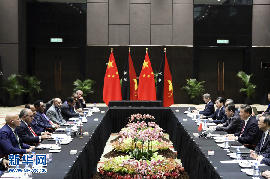 11月16日,國(guó)家主席習(xí)近平在莫爾茲比港同巴布亞新幾內(nèi)亞總理奧尼爾會(huì)談。 新華社記者 丁林 攝
