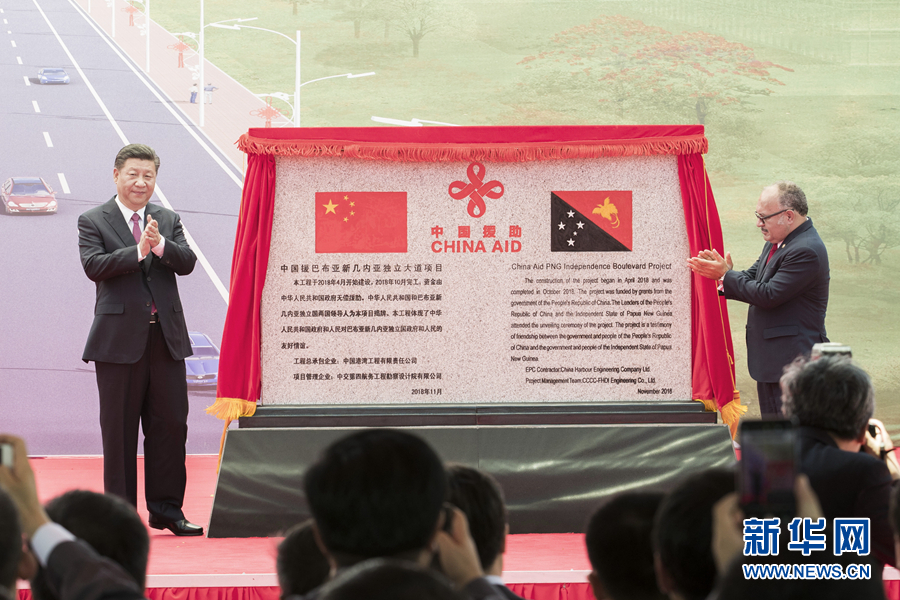 11月16日,國家主席習近平在莫爾茲比港和巴布亞新幾內亞總理奧尼爾共同出席中國援建的獨立大道移交啟用儀式。新華社記者 黃敬文 攝