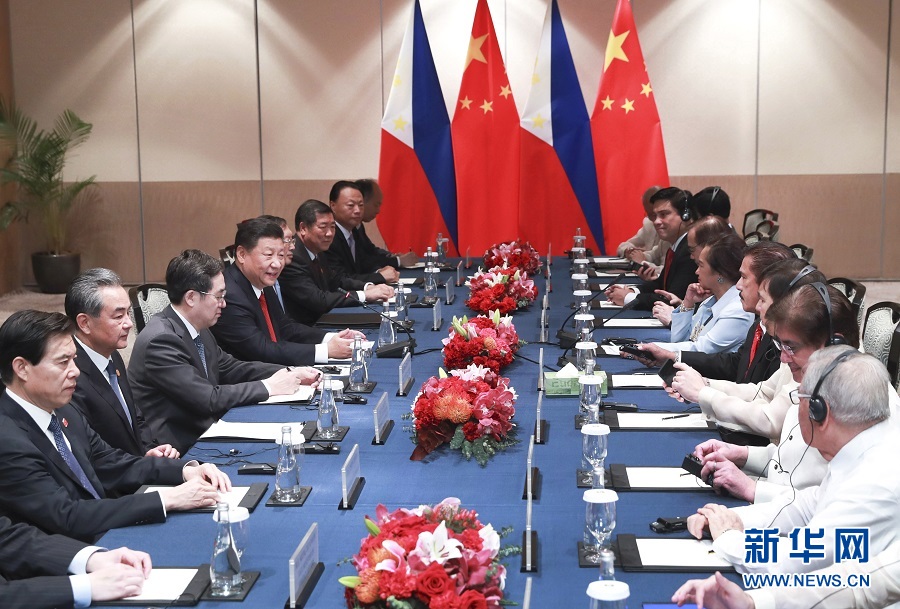 11月21日,國家主席習(xí)近平在馬尼拉會見菲律賓眾議長阿羅約和參議長索托?!⌒氯A社記者 龐興雷 攝