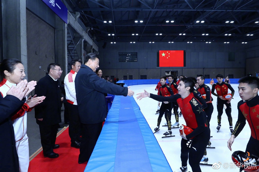 在位于北京石景山首鋼園區(qū)的國家冬季運動訓練中心,習近平先后走進速滑館和冰壺館,看望慰問備戰(zhàn)的運動員、教練員?!坝柧殢姸却蟛淮??”“從事這項運動多長時間啦?”“生活上有哪些困難?”“國際上哪些競爭對手最強?”總書記問得仔細。得知運動員們充滿信心,總書記十分欣慰。他勉勵大家說,舉辦北京冬奧會、冬殘奧會,中國冰雪運動將會上一個大臺階。這是百年不遇的歷史機遇,會應運而生一批高水平優(yōu)秀運動員。習近平強調,體育強則國家強,國家強則體育強。通過北京冬奧會把我國冬季冰雪運動發(fā)展起來,這就是我們的希望。(記者張曉松、鞠鵬、謝環(huán)馳、劉彬)?