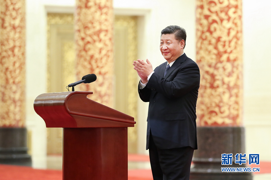 2月20日,黨和國家領(lǐng)導人習近平、李克強、栗戰(zhàn)書、汪洋、王滬寧、趙樂際、韓正等在北京人民大會堂會見探月工程嫦娥四號任務參研參試人員代表。習近平發(fā)表重要講話。 新華社記者黃敬文攝