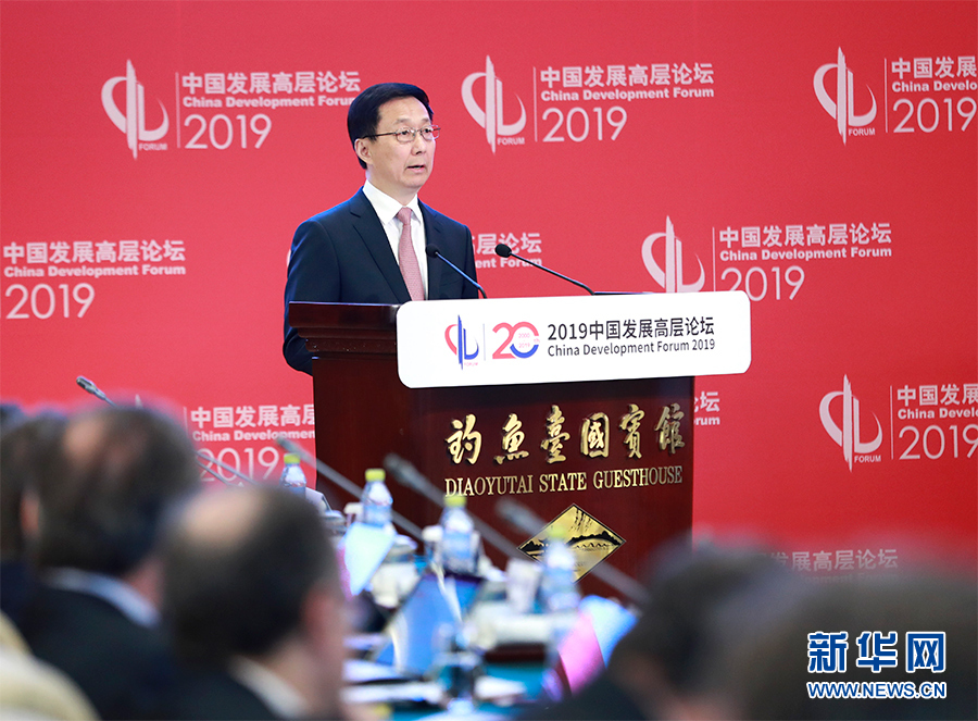 新華社北京3月24日電 中國發(fā)展高層論壇2019年年會24日上午在北京開幕。中共中央政治局常委、國務院副總理韓正出席開幕式并致辭。