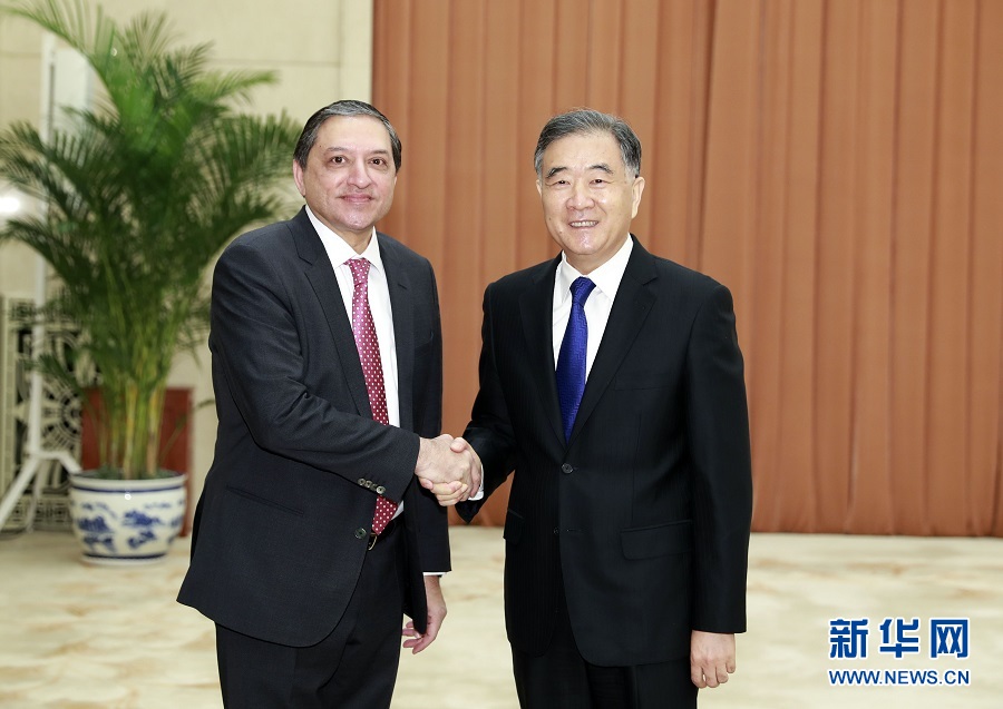 新華社北京4月15日電(記者潘潔)全國(guó)政協(xié)主席汪洋15日在北京會(huì)見巴基斯坦參議院副主席曼德維瓦拉。