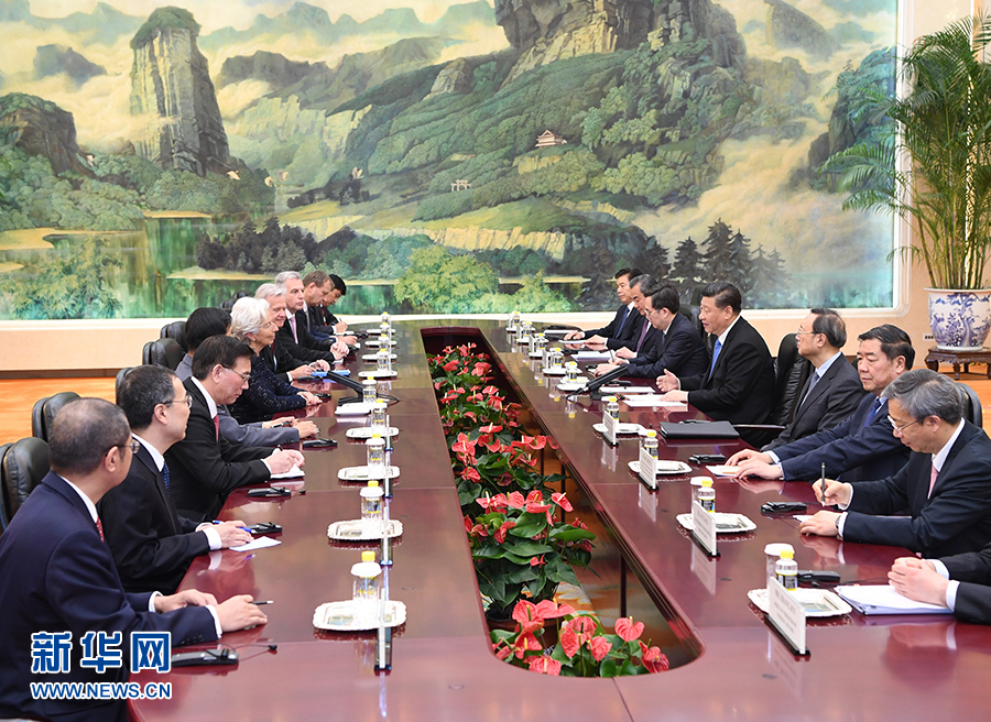 4月24日,國(guó)家主席習(xí)近平在北京人民大會(huì)堂會(huì)見國(guó)際貨幣基金組織總裁拉加德。 新華社記者 饒愛民 攝