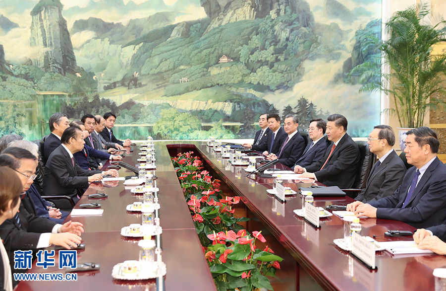 習近平指出,當前,中日關系重回正常軌道,呈現(xiàn)積極發(fā)展勢頭。雙方要恪守中日四個政治文件確立的各項原則,堅持和平友好大方向,持續(xù)深化互利合作,推動兩國關系健康穩(wěn)定發(fā)展。要把中日“互不構成威脅”、“互為合作伙伴,相互支持對方和平發(fā)展”的政治共識落到實處,把兩國各領域交流合作推向新水平。雙方要深挖合作潛力。中方歡迎日方繼續(xù)深入?yún)⑴c中國改革開放,希望日方更加積極參與共建“一帶一路”。雙方要加強溝通和協(xié)調,共同維護多邊主義和自由貿易,共同推動建設開放型世界經濟。中方支持日方辦好二十國集團領導人大阪峰會。今年是中日青少年交流促進年,雙方要在兩國民間特別是青少年當中廣泛播撒友好種子,推進民心相通。