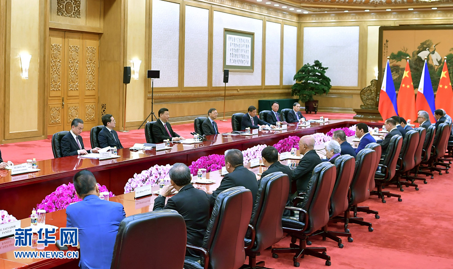 習(xí)近平指出,過去3年,中菲關(guān)系完成轉(zhuǎn)圜、鞏固、提升“三部曲”,步入新的發(fā)展階段。實(shí)踐證明,中菲堅(jiān)持睦鄰友好順應(yīng)歷史潮流,符合人民期待,是唯一正確選擇。我每次同你交談都推心置腹,坦誠(chéng)相見,為的是我們兩國(guó)和兩國(guó)人民的福祉。我愿同總統(tǒng)先生一道,繼續(xù)從戰(zhàn)略高度和長(zhǎng)遠(yuǎn)角度把握好兩國(guó)關(guān)系正確航向。雙方要堅(jiān)持睦鄰友好的大方向,共創(chuàng)攜手發(fā)展的大格局,發(fā)揮妥處分歧的大智慧,把握世界發(fā)展的大潮流。共建“一帶一路”倡議同總統(tǒng)先生提出的“大建特建”規(guī)劃高度契合,雙方合作卓有成效。中方愿同菲方深化發(fā)展戰(zhàn)略對(duì)接,在共建“一帶一路”框架內(nèi)打造合作亮點(diǎn),深化中菲兩國(guó)以及地區(qū)各國(guó)聯(lián)通和發(fā)展。雙方要重信守諾,發(fā)揚(yáng)伙伴精神,保持南海和平穩(wěn)定,加強(qiáng)海上合作。中方將繼續(xù)在禁毒、反恐等問題上全力支持菲律賓人民的正義事業(yè)。