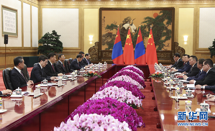 習近平指出,中蒙山水相連,是好鄰居、好朋友、好伙伴。當前,兩國關系進入快車道。中方將秉持親誠惠容理念,繼續(xù)積極支持蒙古國經濟發(fā)展和民生改善,同蒙方一道,牢牢把握正確政治方向,統(tǒng)籌規(guī)劃推進全方位合作,做互尊互信的戰(zhàn)略伙伴、互利互惠的合作伙伴、常來常往的友好伙伴、互幫互助的多邊合作伙伴,努力構筑符合時代要求的中蒙關系,推動兩國關系不斷邁上新臺階。