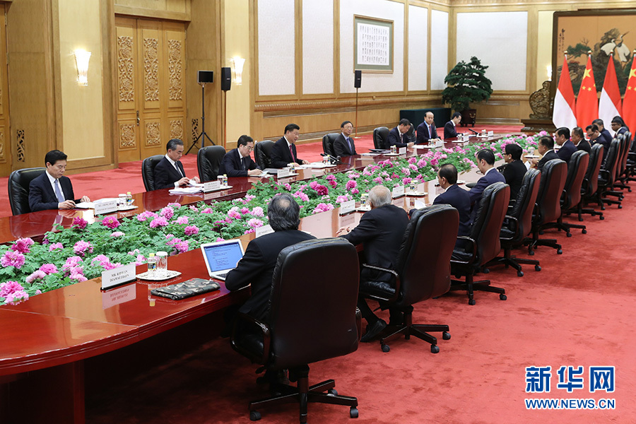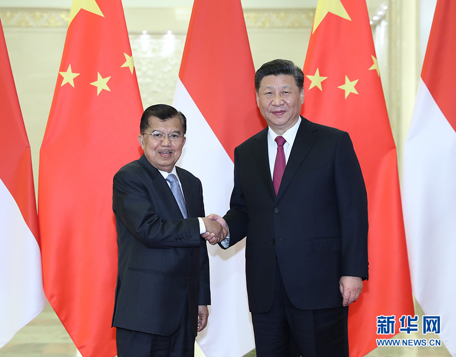 4月25日,國家主席習(xí)近平在北京人民大會(huì)堂會(huì)見印度尼西亞副總統(tǒng)卡拉。 新華社記者 王曄 攝