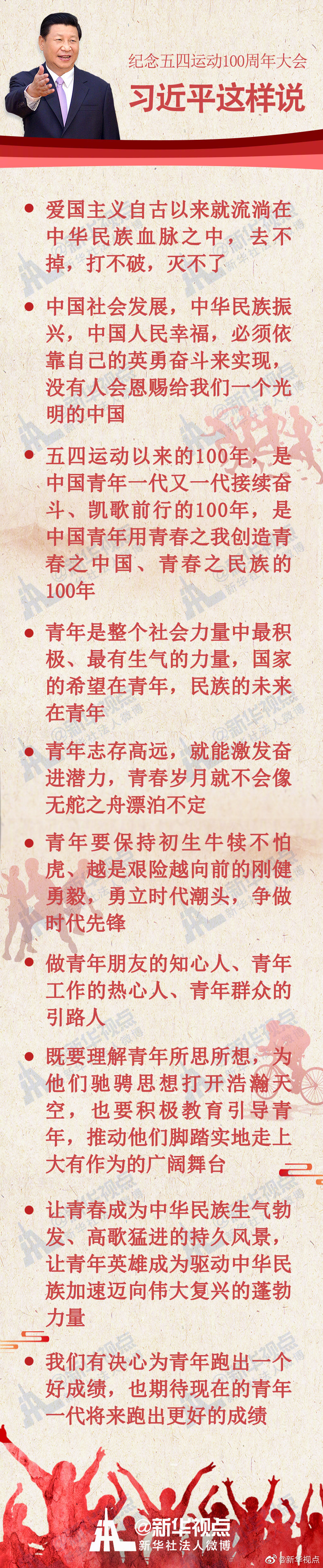 紀念五四運動100周年大會 習(xí)近平這樣說