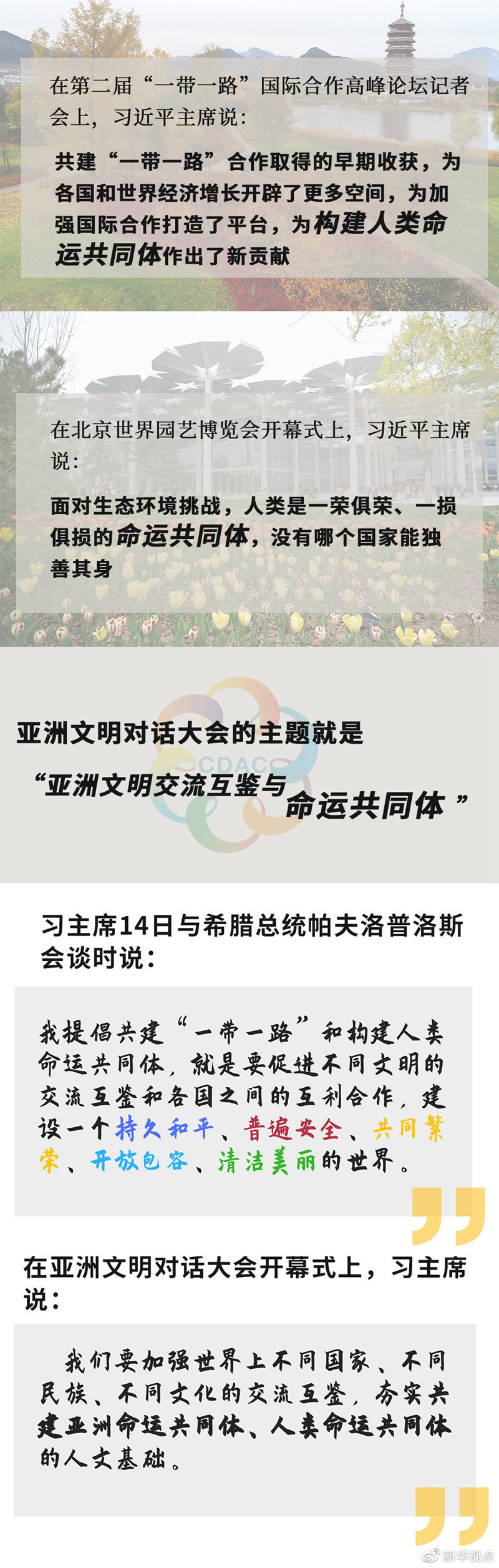 半個(gè)多月來(lái),世界的目光一次次聚焦北京。從第二屆“一帶一路”國(guó)際合作高峰論壇,到2019年中國(guó)北京世界園藝博覽會(huì),再到亞洲文明對(duì)話(huà)大會(huì),三場(chǎng)活動(dòng)主題不同,卻有一個(gè)關(guān)鍵詞貫穿始終:命運(yùn)共同體。