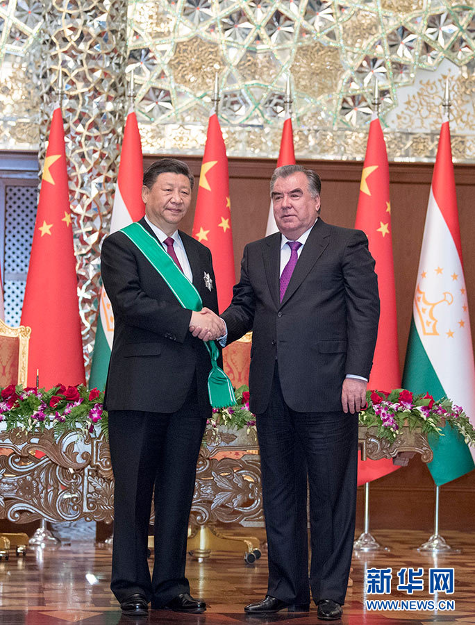 習近平出席儀式 接受塔吉克斯坦總統(tǒng)拉赫蒙授予“王冠勛章”