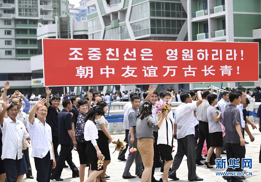 6月20日,中共中央總書記、國(guó)家主席習(xí)近平乘專機(jī)抵達(dá)平壤,開始對(duì)朝鮮民主主義人民共和國(guó)進(jìn)行國(guó)事訪問。這是在平壤街頭歡迎習(xí)近平來訪的朝鮮民眾。新華社記者 燕雁 攝