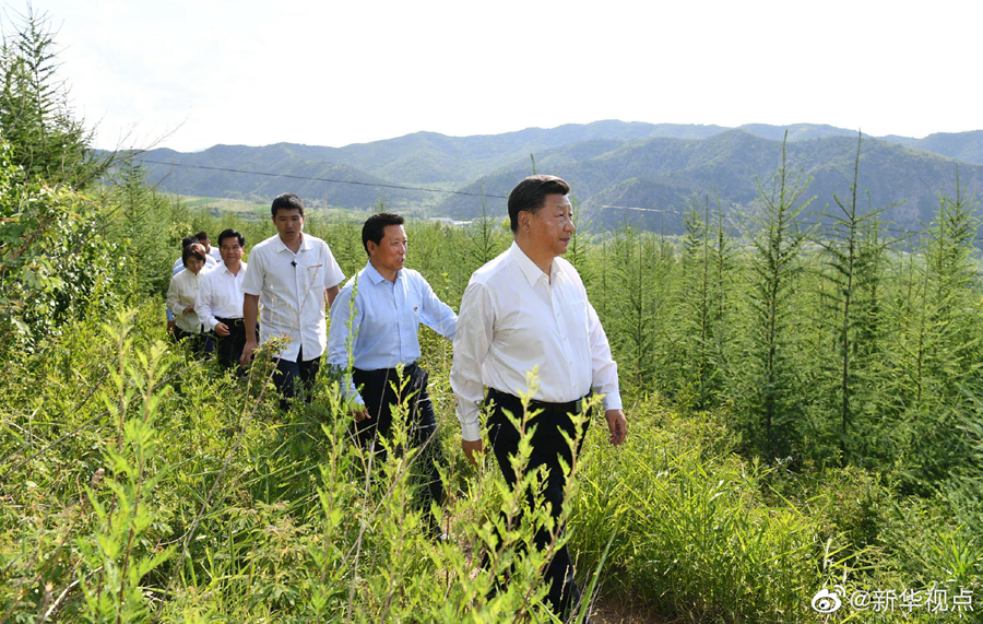 15日下午,習(xí)近平總書記來(lái)到內(nèi)蒙古赤峰市喀喇沁旗馬鞍山林場(chǎng)考察。沿著崎嶇的護(hù)林小道,習(xí)近平步行進(jìn)入林區(qū)察看林木長(zhǎng)勢(shì),同正在作業(yè)的護(hù)林員們親切交談,了解林場(chǎng)建設(shè)發(fā)展情況。大家告訴總書記,現(xiàn)在生態(tài)好了,在上山巡護(hù)的時(shí)候,時(shí)常碰到狍子、野兔、山雞、野豬等野生動(dòng)物,來(lái)旅游的人也多了,山野菜不愁賣了,山貨也特別多,老百姓切切實(shí)實(shí)得到了好處,更加深刻地認(rèn)識(shí)到綠水青山就是金山銀山。習(xí)近平對(duì)大家說(shuō):“護(hù)林員很重要,種樹多不容易??!建設(shè)祖國(guó)北方和首都生態(tài)安全屏障是戰(zhàn)略性的任務(wù),是我們要世世代代做下去的事情?!?/p>
